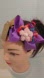Hairband Purple Bow Handmade embellished with a hand knit Crochet Puffy flower pink and white