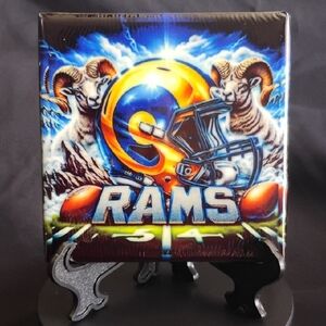 Vibrant Los Angeles rams art featuring a bold design. Striking blue and gold colors. Perfect for sports enthusiasts.
