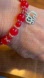 Elegant 10mm red glass beaded stretch bracelet with silver spacers featuring a charming silver elephant charm. Perfect for adding a festive touch to any outfit.