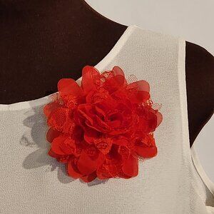 Hand Crafted Red Floral Brooch Lace Fabric Pin Flower Brooch