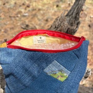 Hand Crafted Red and Pink Cosmetic Bag with Unique Patchwork Design