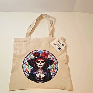 Perfect for the beach, picnics, parties, gym, library, birthday gifts, trade shows, conferences, Christmas gifts, weddings, and various events. #reusablebag #totebag #handmade #sugarskull #dayofthedead #halloween #goth #punk #calavera #eclectic_artis