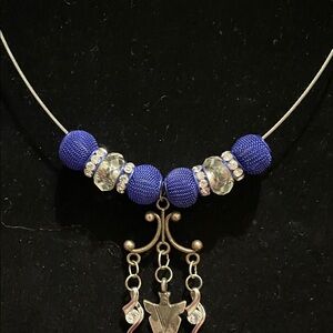 Royal blue beads with silver accents. Unique handcrafted design. Adds elegance to any look.
