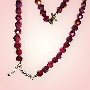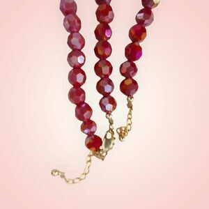 Hand Crafted Ruby Red Faceted Aurora Borealis Glass Beads Necklace Bracelet Gold Clasp and Findings