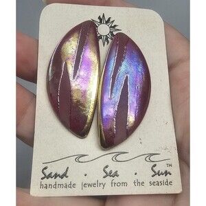 Hand Crafted Sand Etched Glass Fine Crystal Sterling Silver Iridescent Earrings
