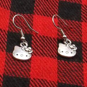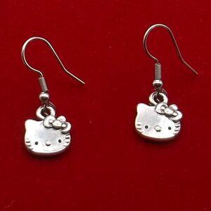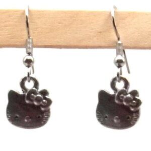 These are made with genuine Sanrio Hello Kitty charms that are approximately 11 mm wide and 13 mm long from the top of the hole on the charm to the bottom. They hang from a silver tone Nickel and Lead free French hook wire. All of my wired earrings come with Silicon Earring Backs to prevent the loss if an earring.