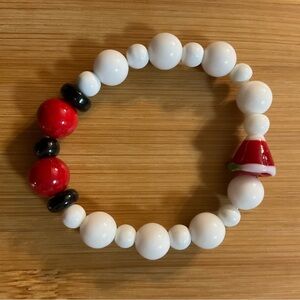Hand Crafted Santa Claus Hat Earrings and Stretch Bracelet Red White Christmas