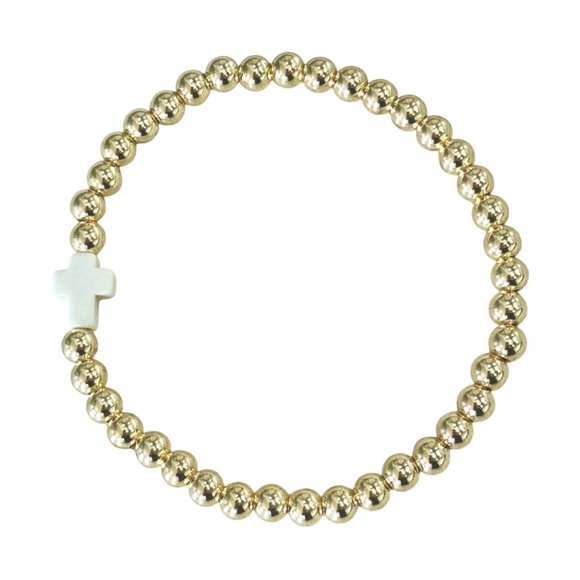 Signature White Turquoise Cross and 5mm Gold Bead Bracelet