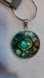 This 1 1/4" glass covered cabochon pendant is vibrant with black, green, white and gold. It is created with a fluid art technique and covered with a glass dome in a silver tone bezel. It hangs from a 4" dark gray silicone printed bracelet that hangs from a metal key chain holder. "You Are You" is a great daily inspiration and would make a perfect gift for someone in need of an inspirational lift.