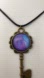 Hand Crafted Skeleton Key Fluid Art Pendant Necklace Purple Blue