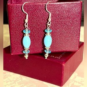 Hand Crafted Sky Blue Bead Earrings Fishhook Style Dangle Pierced Drop Earrings