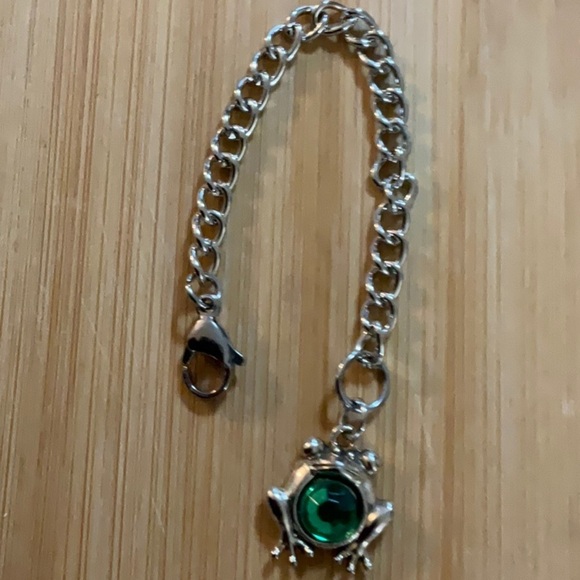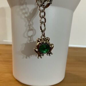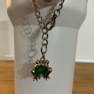 This listing is for a handcrafted Stanley cup charm. It is a silver metal frog with an emerald body. Really cute.