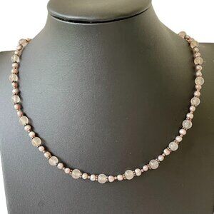 Beautiful hand crafted 925 sterling silver and quartz stone beaded necklace. Measures 18 inch with a lobster clasp. Excellent condition.