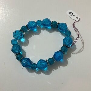 This handcrafted stretch bracelet set is composed of 2 bracelets. One bracelet is turquoise and the other one features vibrant blue, yellow, and orange beads.