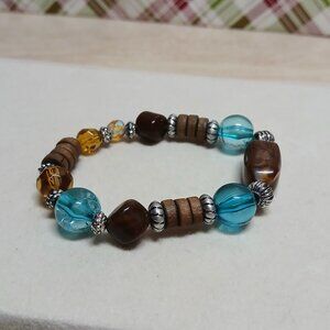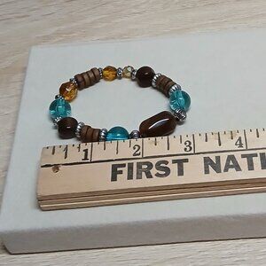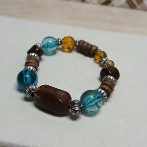 Hand Crafted Stretchy Glass Beaded Silver Tone Bracelet Fashion Jewelry #38