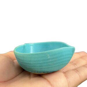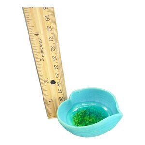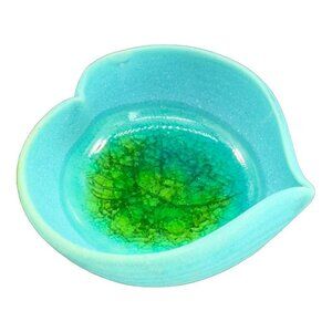 Hand Crafted Studio Pottery Crystalline Blue Heart Shaped Small Dish Bowl Green