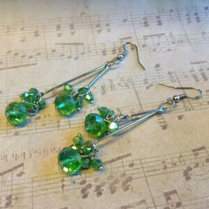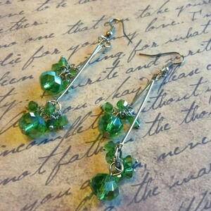 Hand Crafted Swingy Green Faceted Czech Crystal 80mm Long Double Dangle Earrings