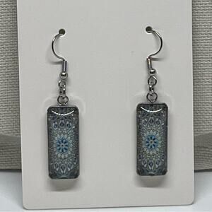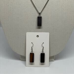 Hand Crafted Teal Yellow Silver Rectangle Pendant Necklace & Earring Set NWT OS