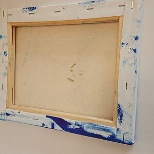 Thank you for supporting my daughter's talent. Her name is Leticia, and she loves art. She is 8 years old. The canvas is a white background with tones on blue.