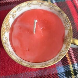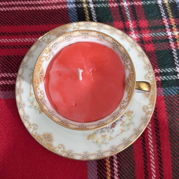 Vintage Noritake Bone China Japan teacup, and saucer hand crafter treasure candle. Beeswax and Soy Blend. Gemstones revealed as you burn the candle