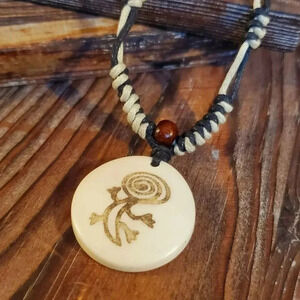 Hand Crafted Tribal Buffalo Bone Cave Drawing Necklace from India