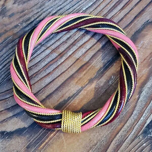 Hand Crafted Twisted Rattan Red Pink Bangle Bracelet Gold Pink Burgundy Black