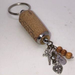 Hand Crafted Up-Cycled Wine Cork BFF Charm & Beaded KEYCHAIN/Purse Jewelry