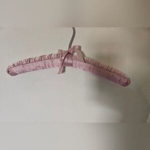 Satin Mauve pink silk with lavander ribbon and top hook giving the hanger a vitage look.