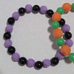 Fun and colorful bracelets with orange, green, purple, and black beads. Perfect for playful adventures.