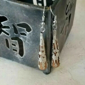 Hand Crafted Victorian Filigree Wood Long Teardrop Shaped Earrings
