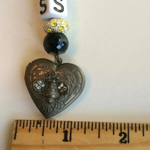 Hand Crafted White, Black & Gold “SIS” Keychain with Heart Shaped Picture Locket