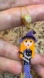This is a cute, rather dainty little pendant, depicting a sweet witch in bright purple tenderly holding her kitty with her broom propped up next to her. It is handmade using the brick stitch technique with Miyuki Delica glass beads of the highest quality. The little witch hangs from a cubic zirconia-encrusted bale, and the gold color chain is adjustable at 16, 17.25 and 18.5 inches approximately. Pendant size (minus the bale) is a bit over 2 inches long.