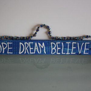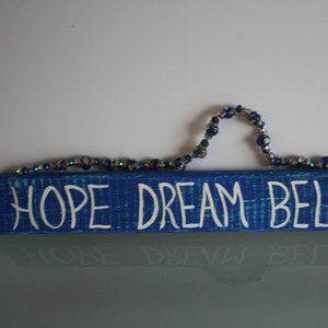 Hand Crafted Wood Hanging "Hope Dream Believe"