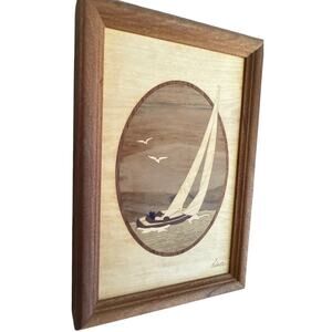 Hand Crafted Wood Inlay Sailboat Wall Hanging Art by Nelson Vintage