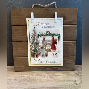 Hand Crafted Wood Photo or Card Display Christmas Wall Decor With 2 Clips