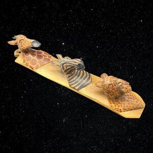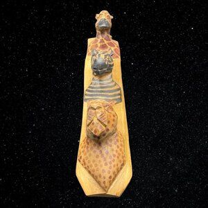 Hand Crafted Wooden Animal Plaque Made in Kenya Wall Hanger Wood Brutalist 13”L