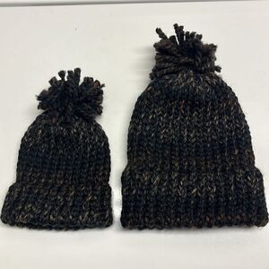 Hand Crafted Wool and Acrylic Knitted Black & Brown Marbled Winter Hat Small