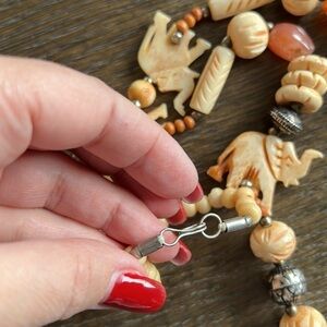 Hand Crafted authentic carved bone beads necklace with agathe & elephant