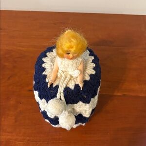 Hand Crafted blue & white striped Toilet Paper Cover Doll Retro Collectible Vtg