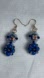 Hand Crafted cloisonné earrings with cobalt blue round beads embellished with blue metallic bicones and blue seed beads with 14k gold filled earwires 2 inches artisan made by Gina’s Beadiful Accessories