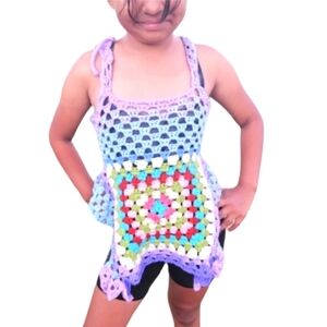This handmade crochet halter top is essential for anyone that love the retro, boho, vintage vibe handcrafted knit, crochet and multicolored granny square are lighting up the runways as a trend Perfect for summer, warm climates and or vacation Great for music festivals, raves, resortwear Guaranteed to make a fashion statement with this one of a kind unique eclectic Artisan crochet top Colorful Yarnspirations Caron Skinny Cakes color Macaroon # 291096 yarn by yarnspirations 100% acrylic