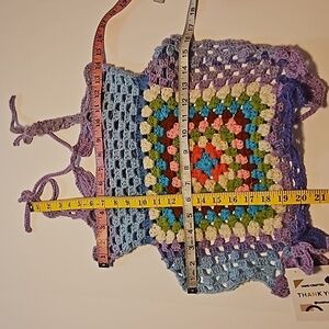 Hand Crafted Crop-top crochet halter Grannycore motifs, multicolored hand Knit
