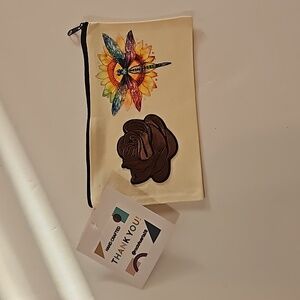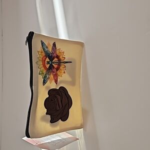 Sun Flower,butterflies,a positive message, colorful self affirmations , embroidered, Dragonfly, Rose, futterfly, canvas, zipper closure, 7" x 4.5"