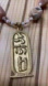 Hand Crafted peach moonstone beaded necklace w/ vintage gold cartouche pendant.