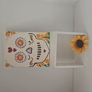 Hand Crafted unique acrylic painting modern art day of the death upcycled white