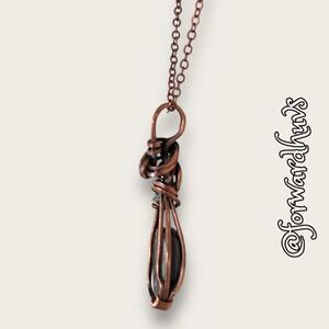 This is a really neat necklace with a one of a kind hand made pendant hanging from the necklace chain. The Abalone center stone is surrounded by a hand crafted copper wire pendant which is very unique.