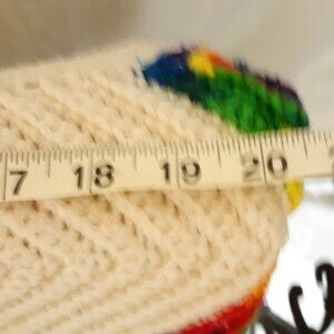 This Hand Crochet Chevron Rainbow Afghan is a vibrant and cozy addition to any space. The cream base is interlaced with primary colors, crafted from durable acrylic. Sized 38"x80", it's a unisex piece that adds a pop of color and warmth.