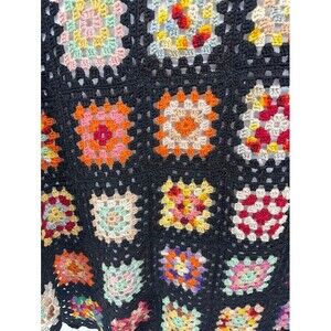 Hand Crochet Coverlet Twin Size 67 x 20 Black and Multicolor Vintage 60's