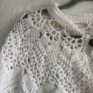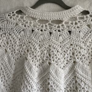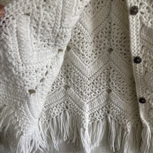 Hand Crochet Poncho Sweater Cape Silver Buttons White Boho Festival