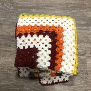 Hand Crochet Square Afghan Throw Blanket Multi Color Bright 44 “ X 44 “ Granny